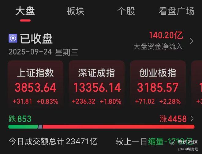 $上证指数(000001.SH)$ A股市场今日延续强劲反弹势头,三大指数全线收红,创业板指涨幅突破2%,深成指涨近1.8%,沪指也录得0.83%的涨幅,北证50同步走强。自去年“924行情”启动以来,市场底部修复动能持续释放,主要指数累计涨幅显著,其中创业板指累计涨幅已超108%,彰显成长风格的强劲弹性。两市全天成交额达2.35万亿元,虽较前一日有所缩量,但仍维持在高位水平,显示出当前市场交投活跃、资金参与意愿较强。全市场超4400只个股上涨,普涨格局明显。