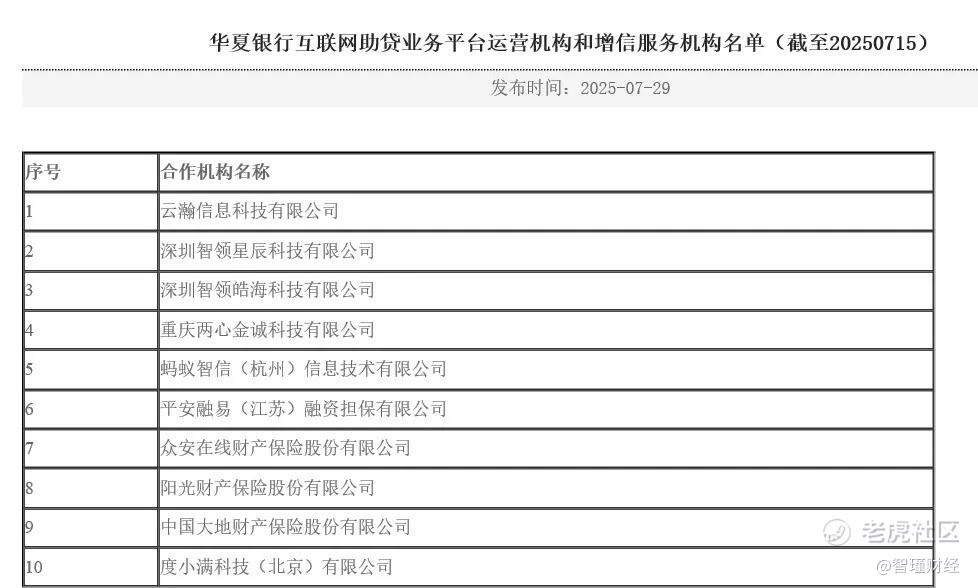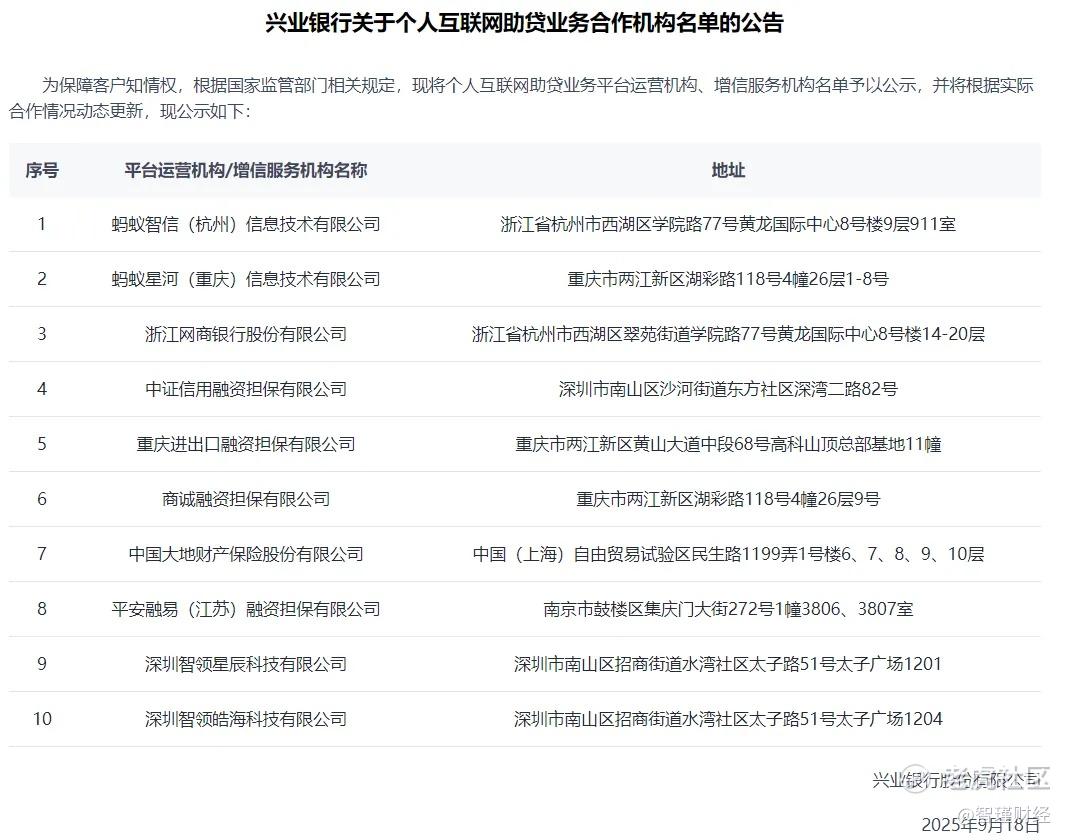 兴业银行、华夏银行、广发银行、恒丰银行类似:既包括蚂蚁、抖音、美团、京东等互联网大厂,还合作保险公司贷款产品,例如众安在线财险、阳光保险、大地保险等。