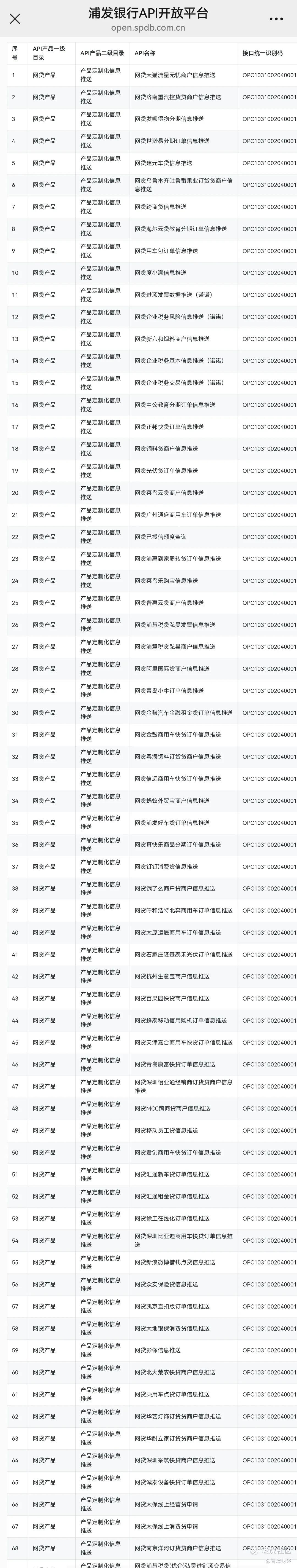 浦发银行比较特殊,不仅包括常见的助贷平台,还针对特定场景、特定人群推出定制化产品,以API形式输出灵芝快贷、盈利贷等多超百个网贷产品。