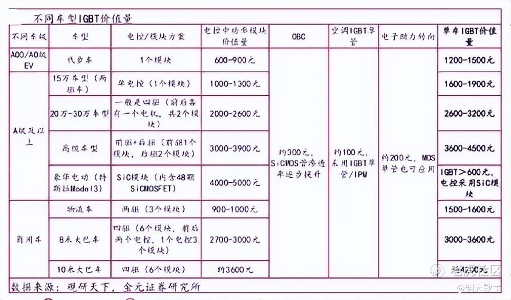 现不同新能源车型IGBT成本介于1200元至4500元不等。