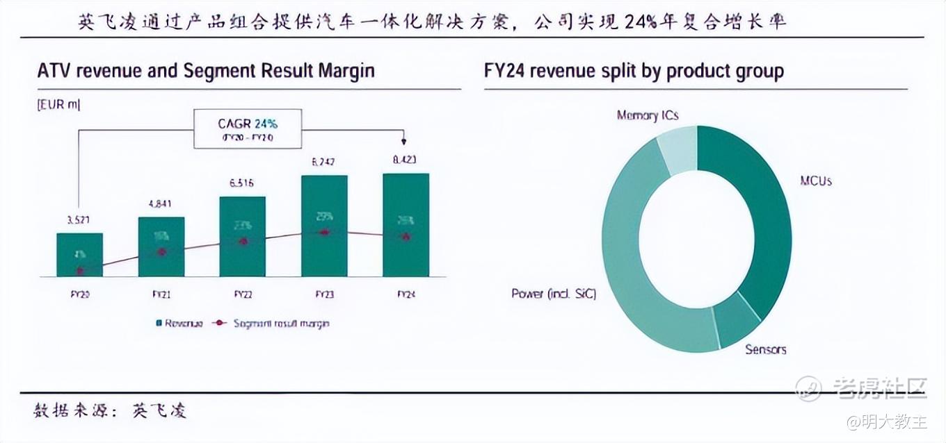 值得注意的是, $英飞凌(0KED.UK)$ 通过3D Packaging、Embedded Die、SoC等封装、集成技术将功率模块封装至单一芯片,为客户提供一体化解决方案。因此,英飞凌ATV部门2020-2024年化复合增长率高达24%。