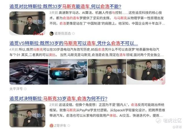 我们再来看追觅造车,如果复盘这个月的消息,造车更像是精心布局的一盘大棋。比如从披露12年前造车计划书的初心,再到首轮融资到位、回购老股辟谣资金实力,再从中国成熟的供应链以及追觅所具有的专利技术积累、海外渠道优势,甚至还从俞浩和马斯克的造车经历来类比,而俞浩本人亲赴德国选址等等。正如官方宣言所说:用了十二年,终于等一个属于追觅的“时代时机”。