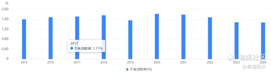资产质量方面,民生银行不良贷款率呈现“先升后降再趋稳”的走势。2015–2016年不良率由1.60%微升至1.68%,反映当时信用风险初步暴露;随后通过加强风险管控与不良处置,2017–2022年间不良率逐步回落,2023年后稳定在1.5%以下,资产质量压力得到有效控制。