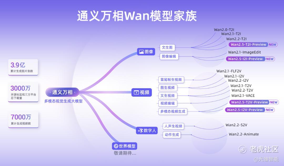 在视觉基础模型中,通义万相推出Wan2.5-preview系列模型,涵盖文生视频、图生视频、文生图和图像编辑四大模型。另外,通义大模型家族还迎来了全新的成员,语音大模型通义百聆,包括语音识别大模型Fun-ASR、语音合成大模型Fun-CosyVoice。