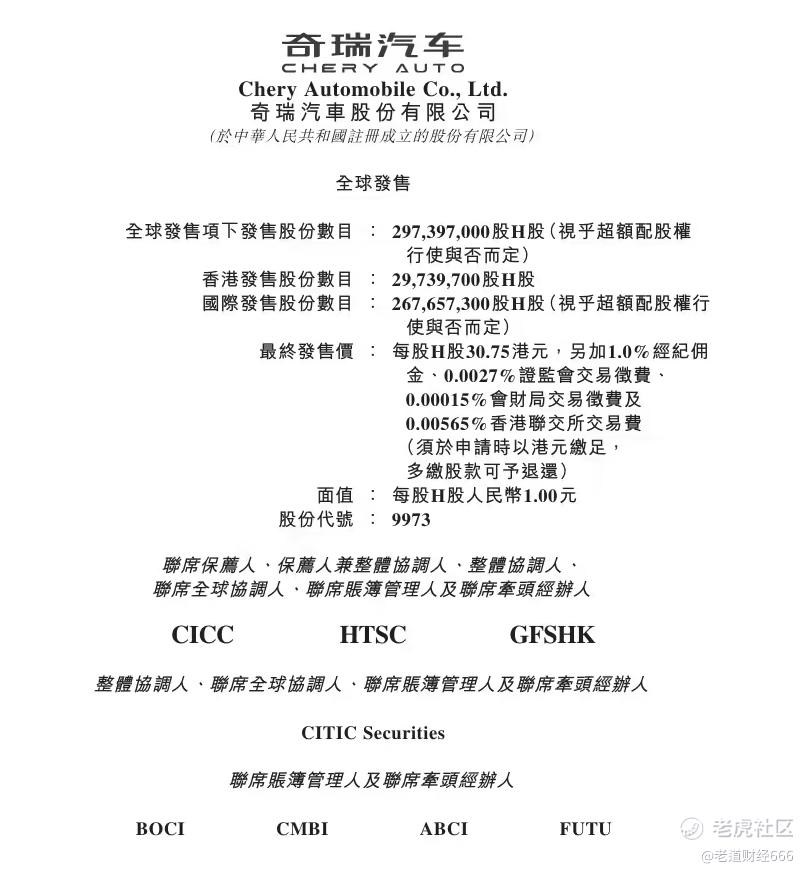 这次上市,奇瑞是按招股价上限30.75港元一股定的价,总共募到了91.4亿港元。而且香港公开发售那部分,超额认购了308.18倍,直接创下了今年港股新股认购的纪录。