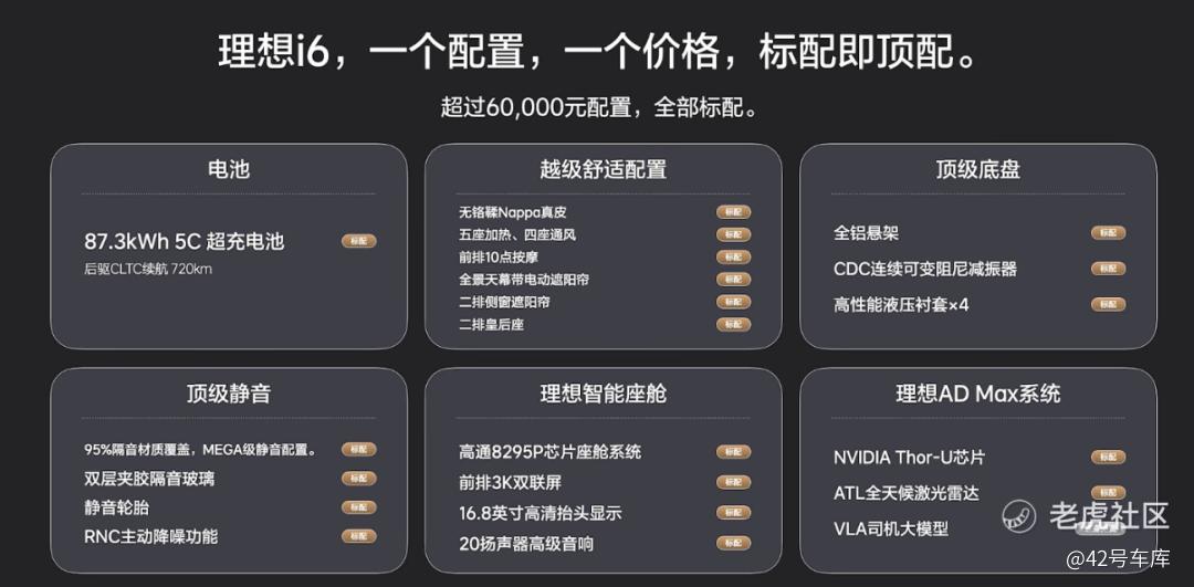 $理想汽车(LI)$ 理想 i6 正式上市了,只发布了一个车型一个价格,24.98 万,明天正式开启交付。