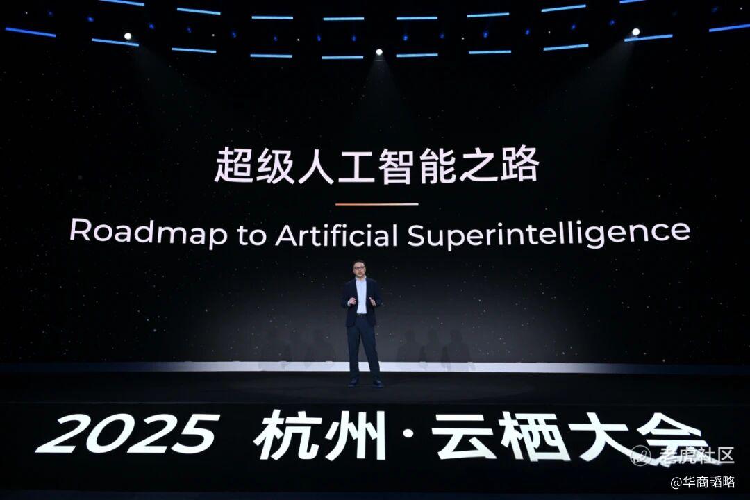 23分钟的演讲中,慢条斯理,平静但坚定的吴泳铭,一上来就格局打开,对当下最重要的科技浪潮,也是马云这几年最反复强调的AI大胆想象与定义,并首次提出全新概念:超级人工智能(ASI)。