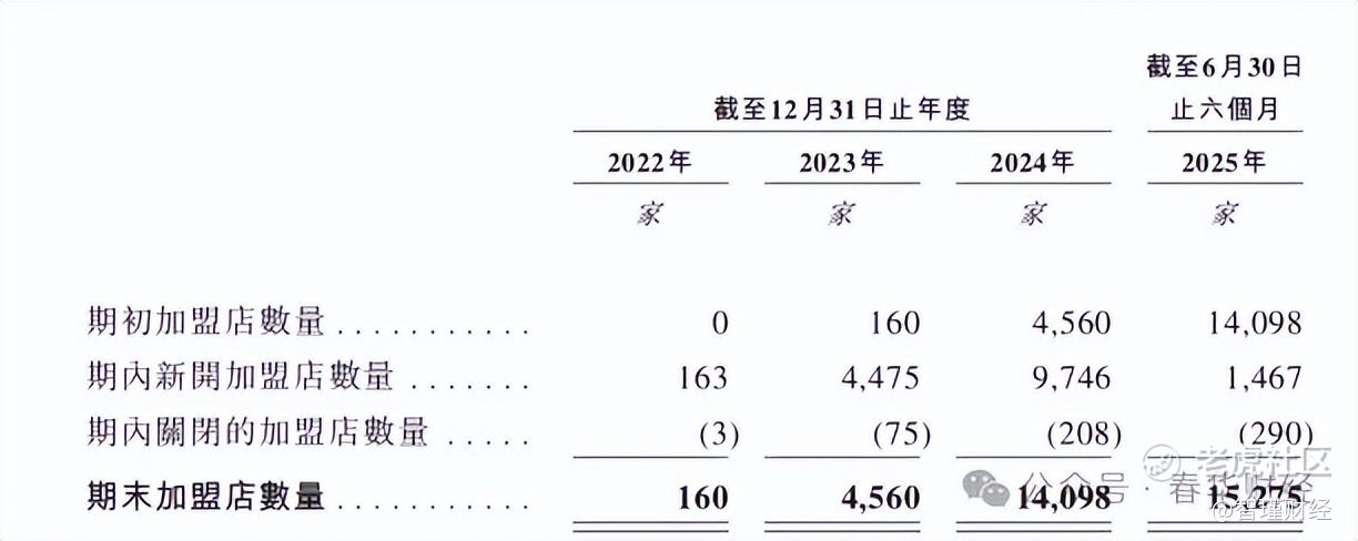 万辰集团1.5万家门店中99.4%为加盟店的结构,构成了其最突出的经营风险。尽管招股书宣称闭店率仅1.9%,但这种轻资产模式形成了强烈的路径依赖——公司收入高度依赖向加盟商供货,2025年上半年1468家的新增门店数较2024年同期大幅下滑,直接导致营收增速从247.9%放缓至106.89%。