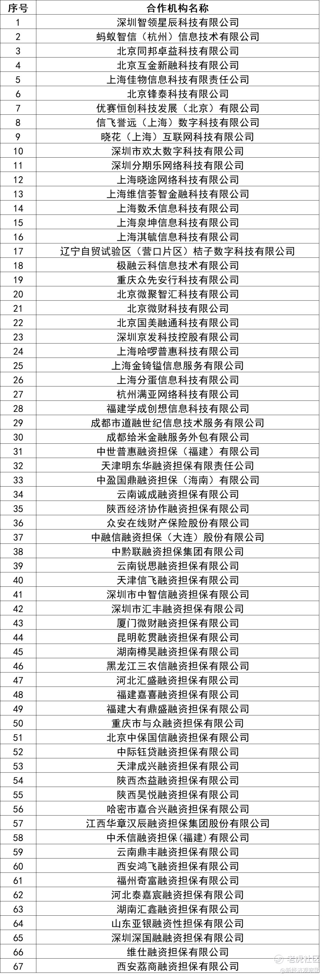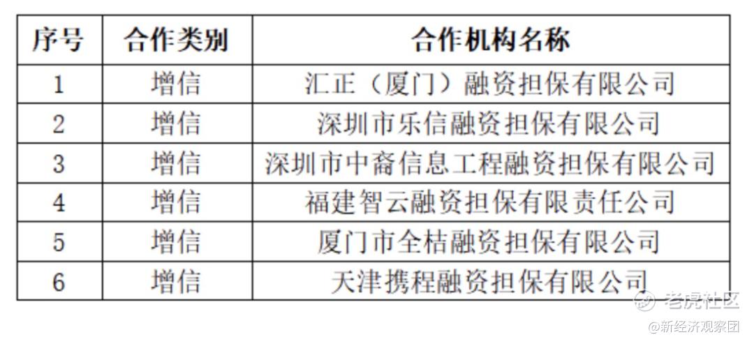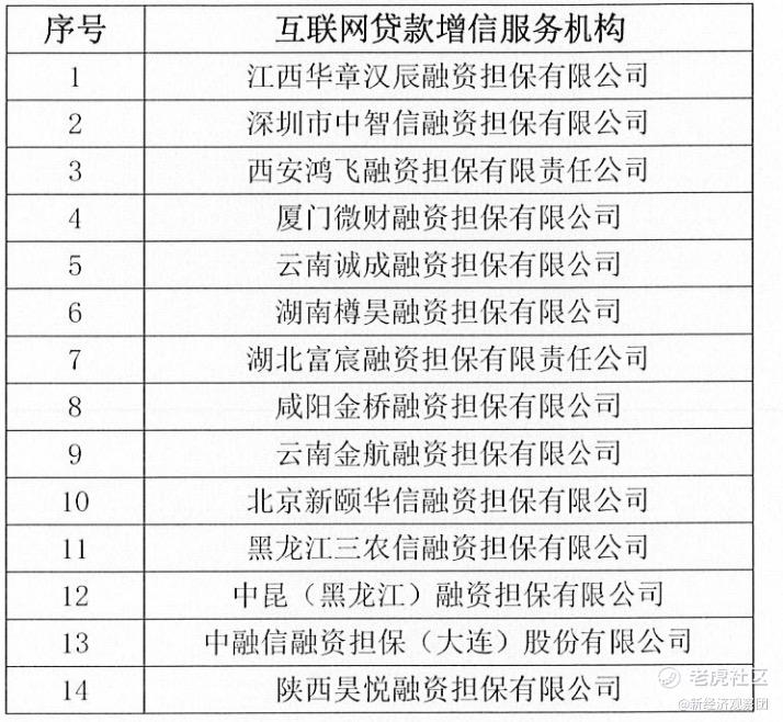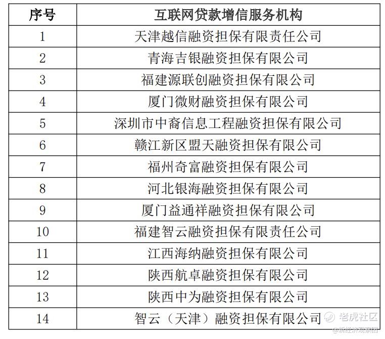 其中,互联网贷款增信服务机构共有21家,涉及20家融资担保公司和1家保险公司。