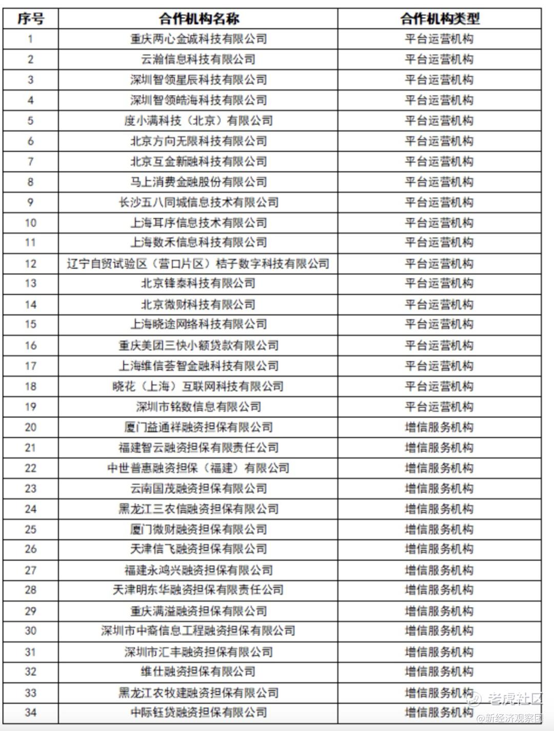 互联网贷款合作机构包括24家,主要是知名助贷公司。
