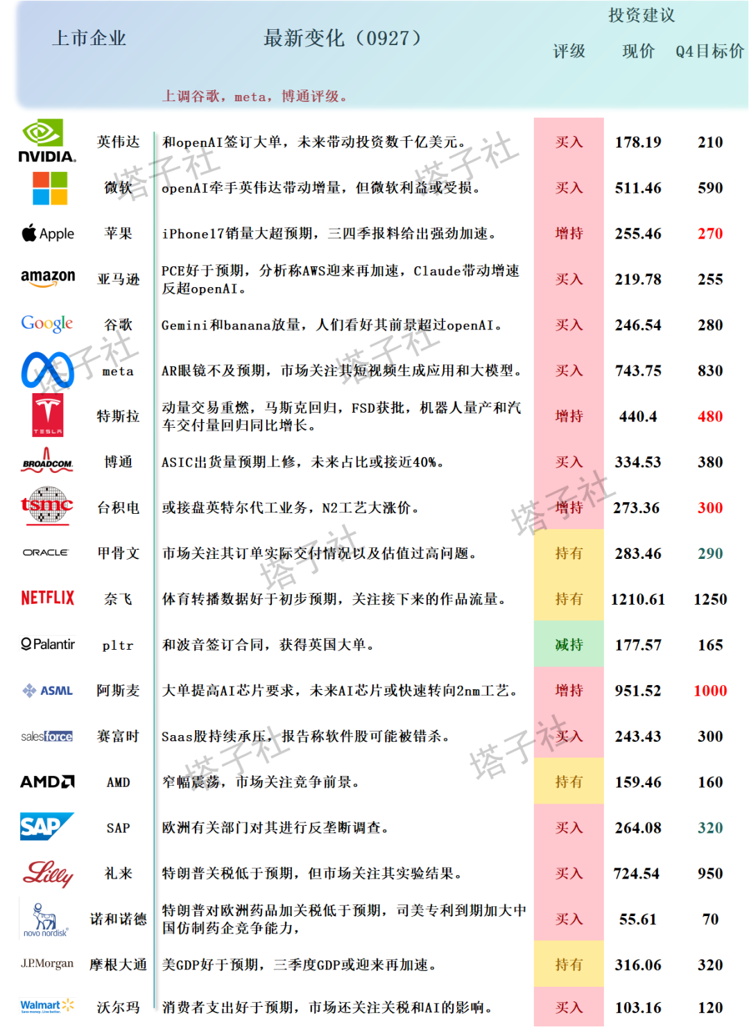 说明:买入(10%以上上涨空间)>增持(5%~10%上涨空间)>持有(±5%振幅空间)>减持(5%~10%下跌空间)>卖出(10%以上下跌空间);此外,如果某股票的波动率较低,持股体验好,则酌情上调评级,波动率高则反之。
