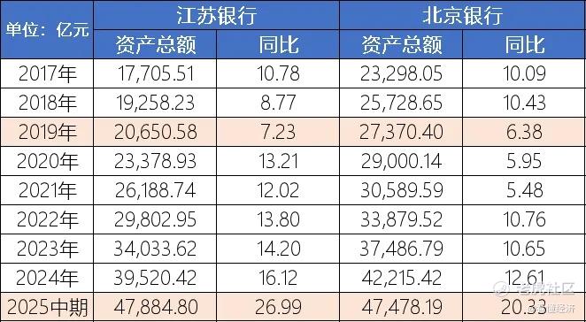 2025年中期,江苏银行实现资产规模总量首次超越,打破北京银行自2007年上市以来持续18年的城商行资产“规模之王”地位。