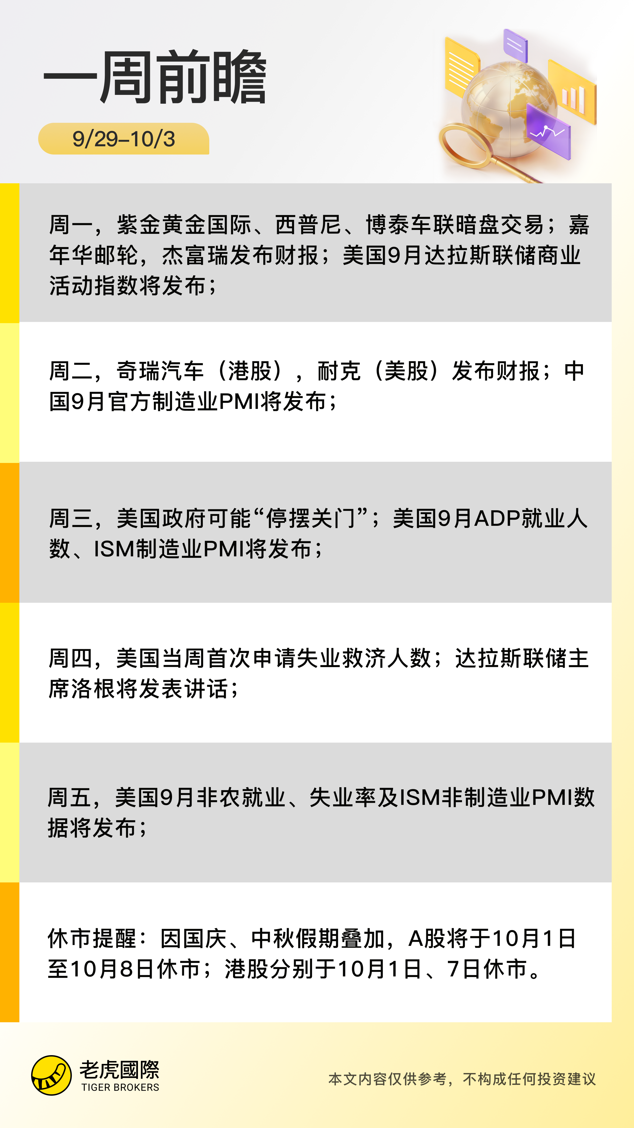 休市提醒:因国庆、中秋假期叠加,A股将于10月1日至10月8日休市;港股分别于10月1日、7日休市