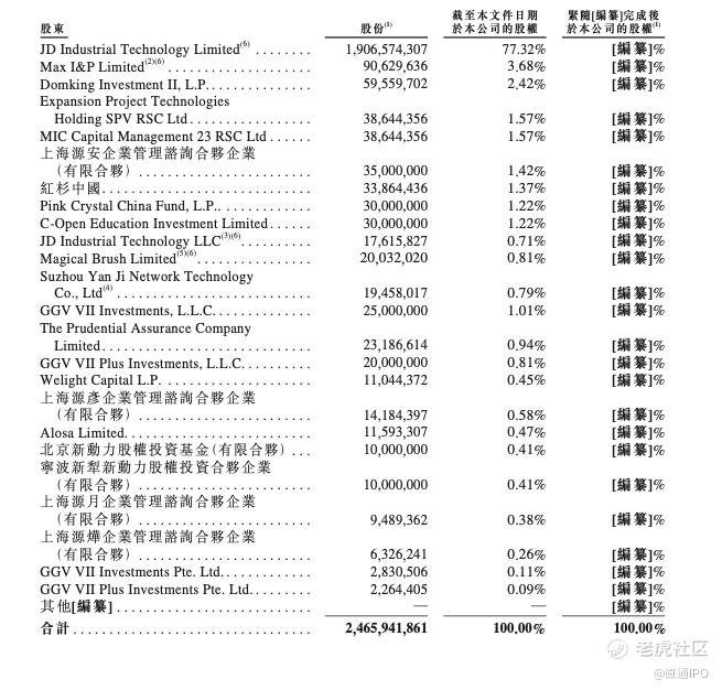 IPO前,刘强东通过京东集团、Max I&P Limited等实体,合计控制约82.52%投票权。其中,京东集团通过其全资子公司持股77.32%;刘强东则通过Max I&P Limited持股3.68%。