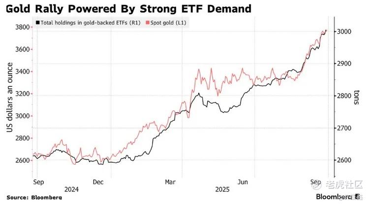 今年黄金涨幅已超40%,在央行购金需求与美联储重启降息周期推动下接连创出新高。金价有望实现连续第三个季度上涨,黄金ETF持仓量已达2022年以来最高水平。高盛集团与德意志银行等机构均预期涨势将持续。