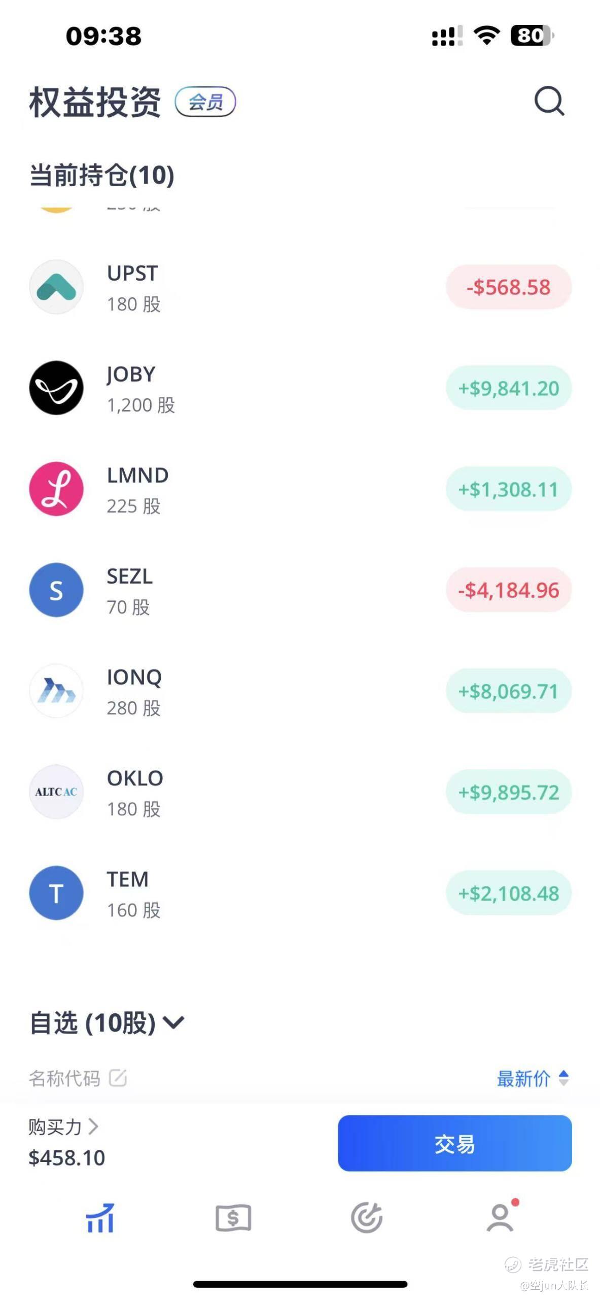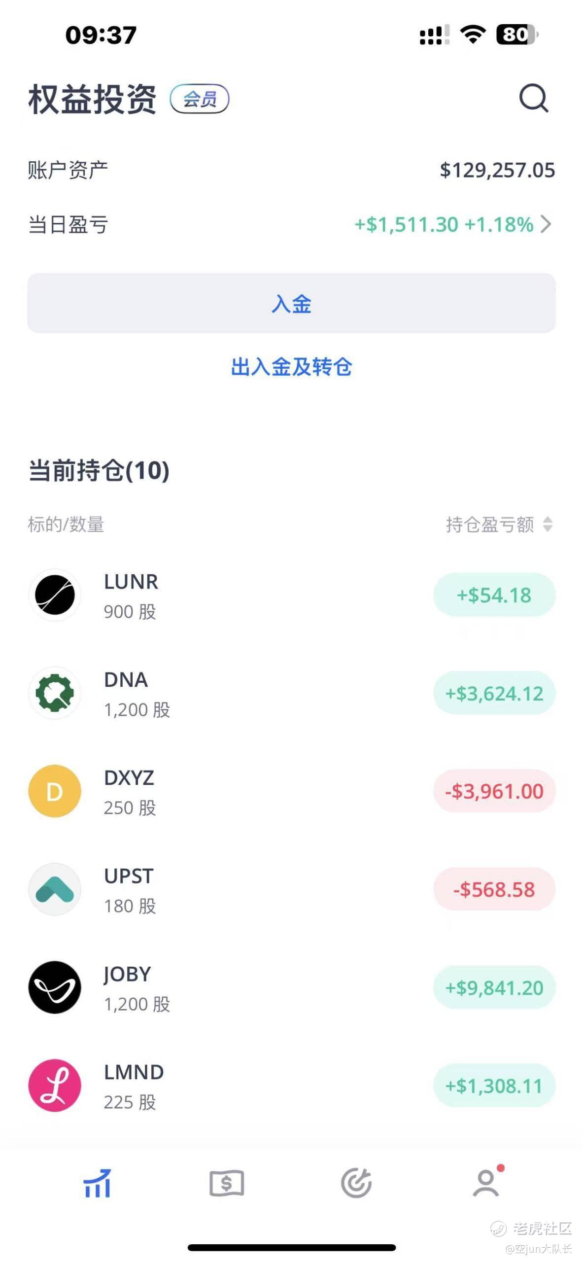 这是我的实盘账户,收入还是29%,三个月下来整体收益29%,也不算低,毕竟我是天天发实盘的,你让其他人天天发实盘,没有几个人敢的,不要说收益高低的问题,就是天天发实盘这个行业,一般人做不到的,我主要还是抓到了JOBY,IONQ,OKLO这三个大牛股,现在是六个股票上涨,四个股票下跌,整体就能赚钱,我为什么说不能补仓,如果把OKLO,IONQ ,JOBY这些上涨的股票出来换成UPST,DXYZ,SEZL这三个下跌的股票,那就惨了,如果不动的话,股票下跌是有限度的,顶多跌100%,但是股票上涨可不止100%,不信过一段时间我的股票就会有涨到100%以上的,我都是提前说,不马后炮,大家可以长期跟踪我的实盘,这是6月27号开始的,大家可以去看这天的文章,我的目标是一年下来收益50%,到明年6月份我应该可以完成这个目标。