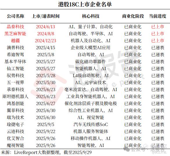 据**大数据统计,目前申请港股18C上市的公司已达18家,其中晶泰科技、黑芝麻智能、越疆3家已成功上市,15家已递表。