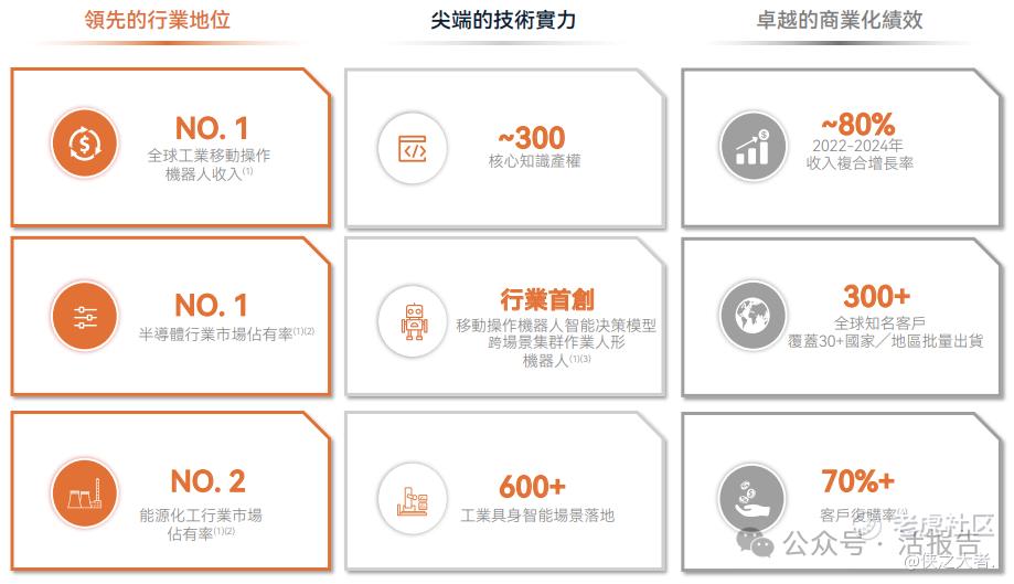公司战略聚焦工业具身智能中最具增长潜力和场景适应性的移动操作机器人。按2024年收入计,公司在工业移动操作机器人公司中排名全球第一。公司的机器人解决方案主要应用于半导体、能源及化工产业。按2024年收入计,公司在中国半导体产业排名第一,在能源及化工产业排名第二。