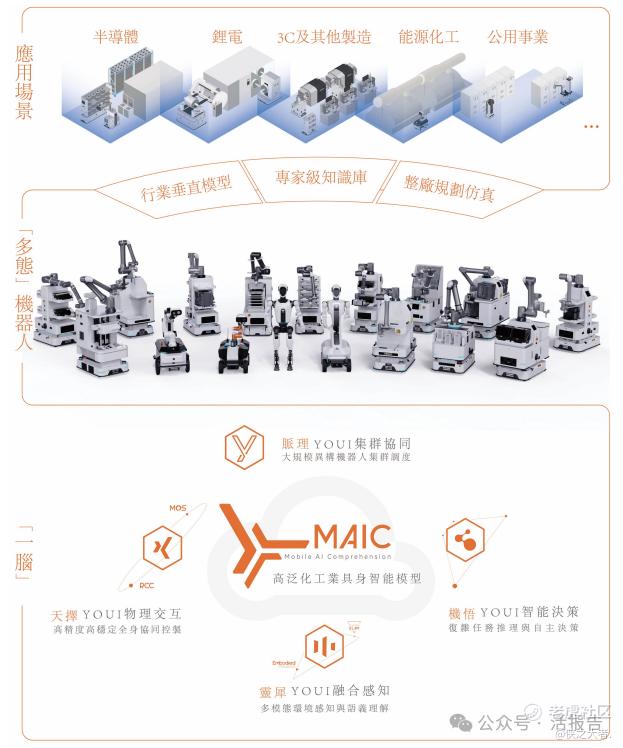 公司为半导体、能源化工、锂电、3C及其他制造、公用事业等众多行业提供「一脑多态」具身智能机器人解决方案,包含高泛化智能模型以及具备感知、移动、操作能力的多形态机器人。