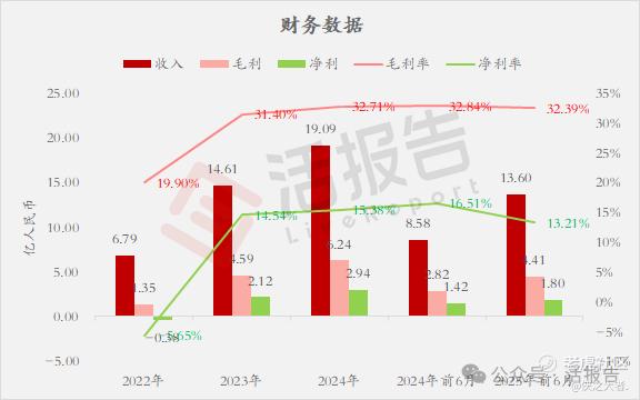 收入分别约为人民币6.79亿、14.61亿、19.09亿、8.58亿、13.60亿,2025年前6月同比+58.50%;