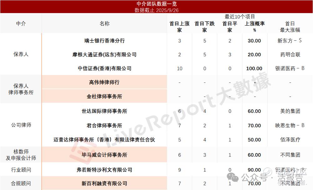 据**大数据统计,TOP TOY中介团队共计11家,其中保荐人3家,近10家保荐项目数据表现参差不齐;公司律师共计3家,综合项目数据表现平平。整体而言中介团队历史数据表现一般。