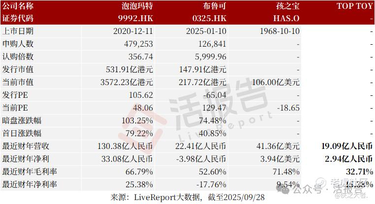 同行业IPO可比公司有:泡泡玛特、布鲁可、孩之宝等。