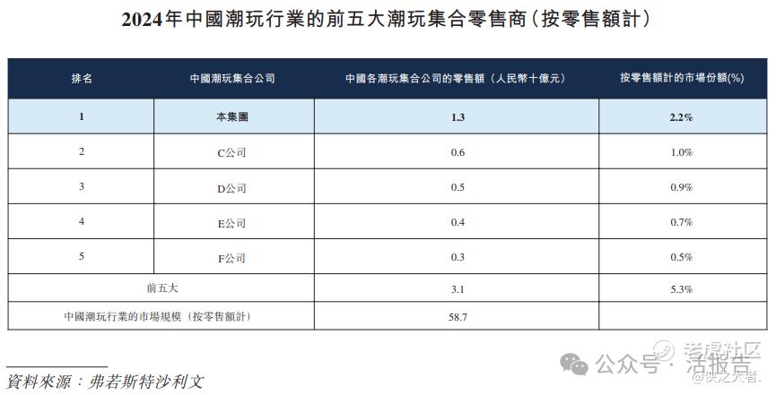 于2024年,公司在中国的零售额为人民币13亿元,以2.2%的市场份额在中国潮玩行业的潮玩集合零售商中位居首位。