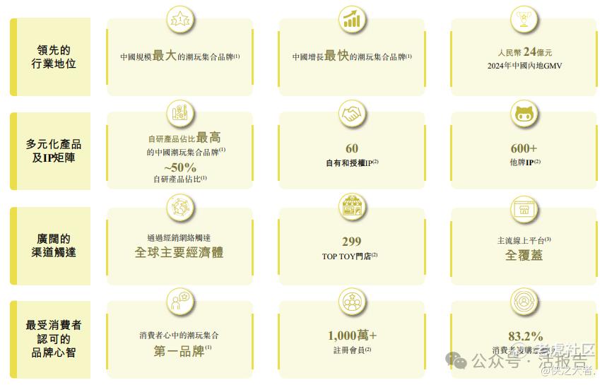 2022年至2024年,公司的GMV复合年增长率超过50%,根据弗若斯特沙利文,公司是中国增长最快的潮玩集合品牌,亦是年GMV突破人民币10亿元大关历时最短的中国潮玩品牌。