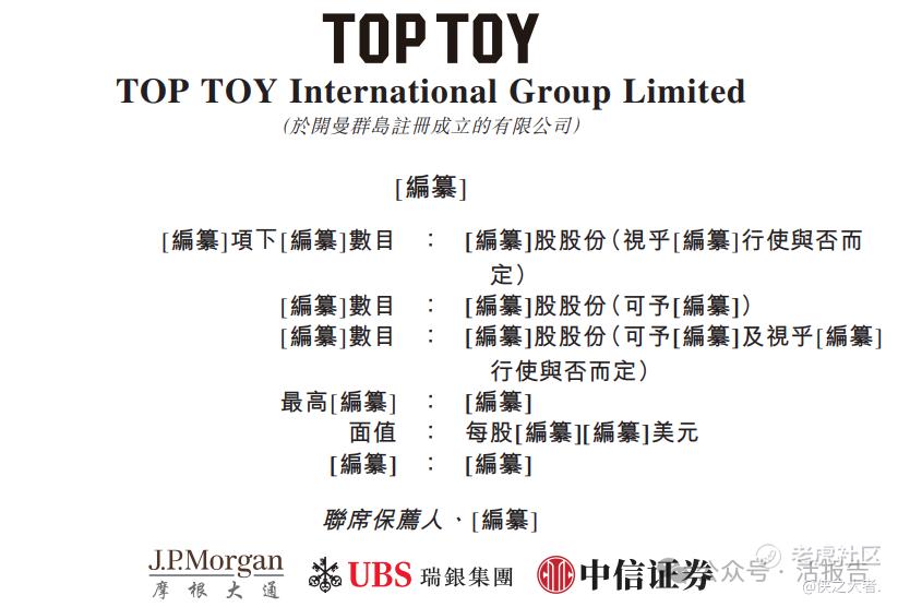 2025年9月26日,TOP TOY首次向港交所递交招股书,拟在香港主板上市,联席保荐人为摩根大通、瑞银集团、中信证券。
