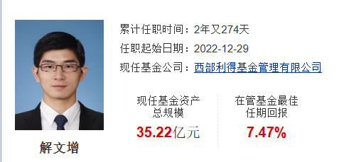 公开信息显示,解文增具有基金从业资格,2022年10月加入西部利得基金管理有限公司,同年12月正式管理公募产品。也就是说,从来到西部利得基金公司,到走马上任基金经理,这中间间隔不到3个月。
