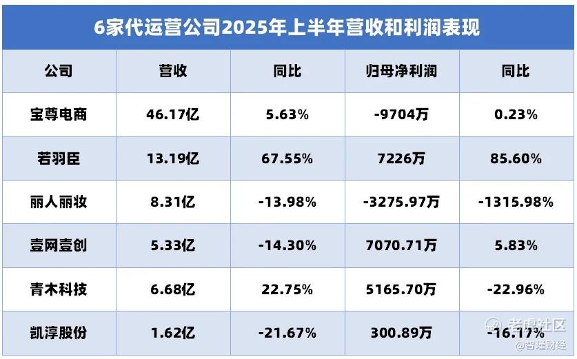 且横向对比行业竞争对手,若羽臣今年上半年业绩优势更为显著,为六家上市电商代运营公司中唯一一家实现营收和净利双增的。宝尊电商营收规模上虽然在6家里规模比其他5家之和还要大,但是还处于亏损状态;丽人丽妆、凯淳股份业绩双降;壹网壹创增利不增收、青木科技增收不增利。