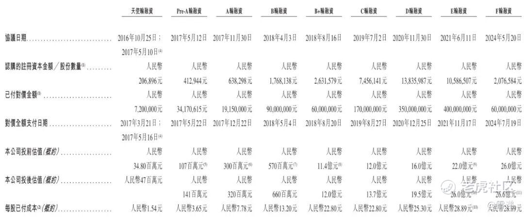 森亿智能2021年11月完成4亿元E轮融资,投后估值为26亿元,每股成本为28.89元;2024年7月完成6000万元F轮融资,投后估值为26.6亿元,每股成本为28.89元。