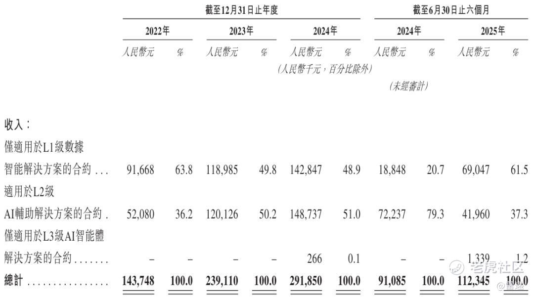 森亿智能2025年上半年仅适用于L1级数据智能解决方案的合约收入为6905万元,占营收的比例为61.5%;适用于L2级AI辅助解决方案的合约收入为4196万元,占营收的比例为37.3%。