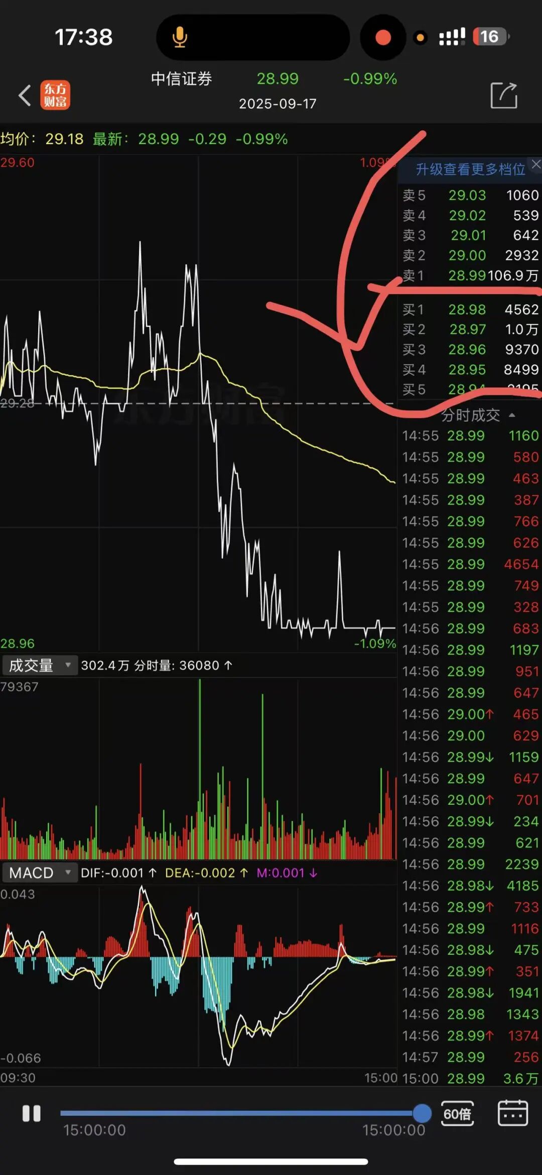 事情发生在9月17号上证要突破3900点的时候,彼时,尾盘一个106.9万手的挂单。算下来是31亿的挂单卖出。