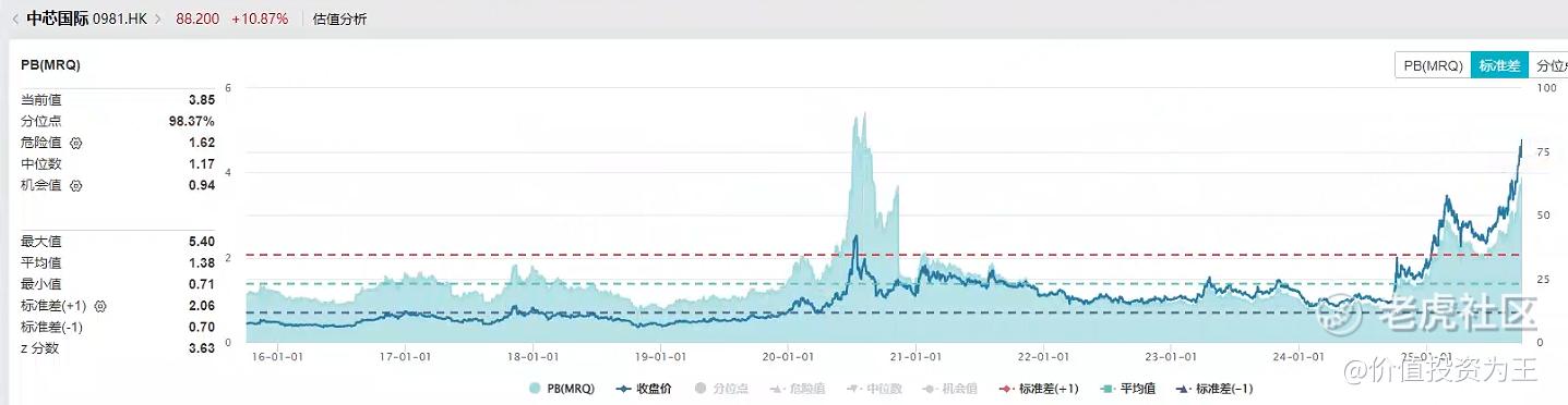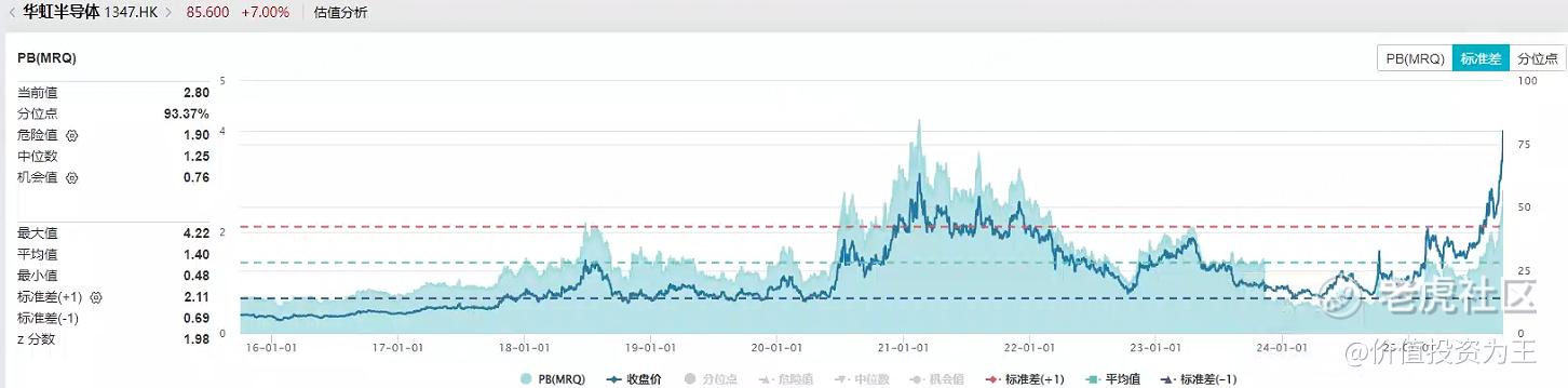 港股半导体个股较少,主要是中芯国际和华虹,从市净率估值上看,两家公司正在逼近2021年的最高点: