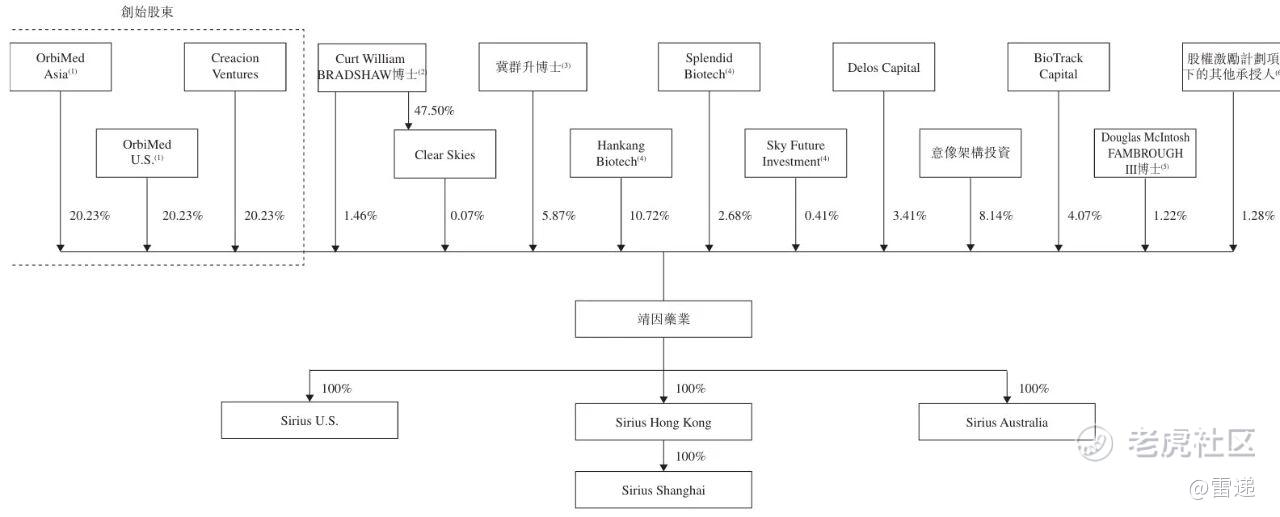 IPO前,OrbiMed Asia、OrbiMed U.S、Creacion Ventures分别持股为20.23%,Curt William BRADSHAW博士持股为1.46%。