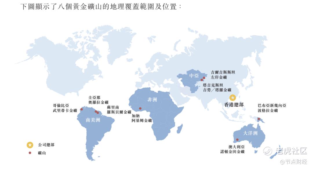 根据聆讯后资料集,其资产包涵盖8座海外高品位金矿,分布于南美洲、中亚地区、非洲和大洋洲等地,分别为武里蒂卡金矿、诺顿金田金矿、罗斯贝尔金矿、奥罗拉金矿、吉劳/塔罗金矿、阿基姆金矿、左岸金矿、波格拉金矿。