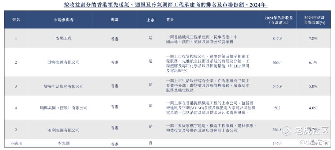据估计,于2024年,前五大市场参与者于香港的暖气、通风及冷气调节工程市场的总市场份额约为26.8%。于2024年,本集团于香港的整体暖气、通风及冷气调节工程市场的市场份额约为1.3%,而于香港现有建筑物及基础建设的暖气、通风及冷气调节工程市场的市场份额约为1.9%。