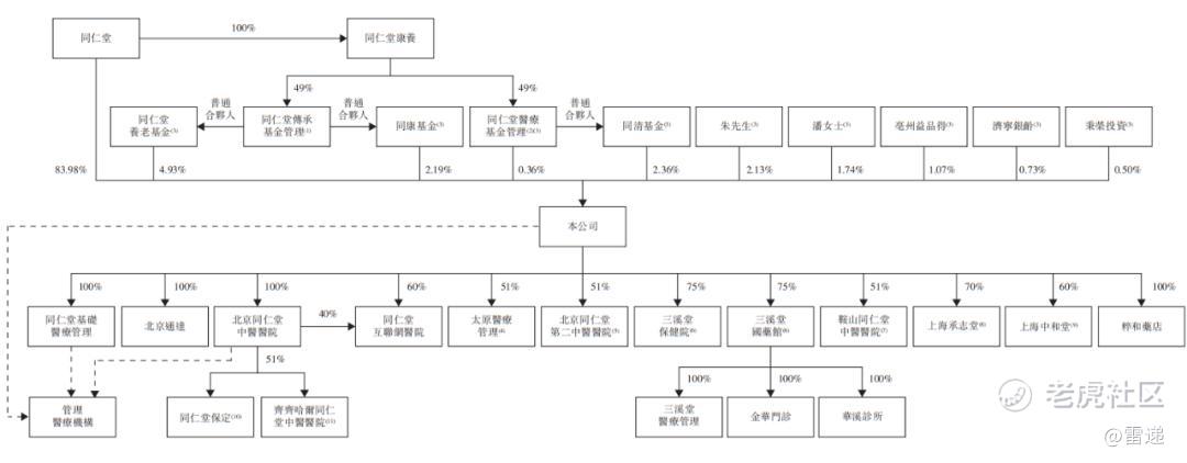 IPO前,同仁堂医养的最终控股股东同仁堂有权直接及间接通过同仁堂康养、同仁堂传承基金管理、同仁堂医疗基金管理、同仁堂养老基金、同康基金及同清基金行使同仁堂医养已发行股本总额约93.83%的投票权。