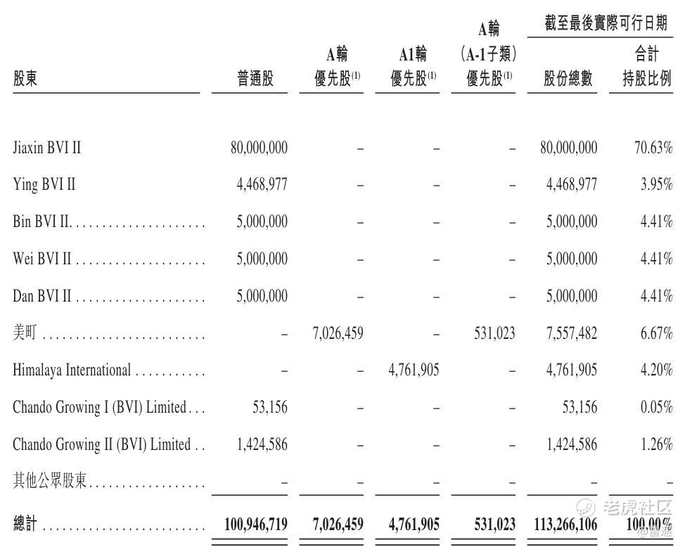 美町持股6.67%,加华资本旗下Himalaya International持股为4.2%,Chando Growing I (BVI) Limited持股为0.05%,Chando Growing II (BVI) Limited持股为1.26%。