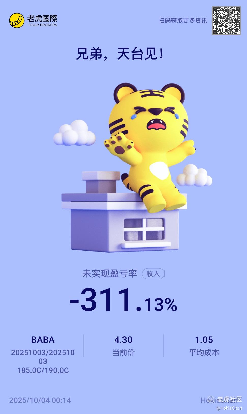 $阿里巴巴 垂直价差 251003 CALL 190.0/CALL 185.0$