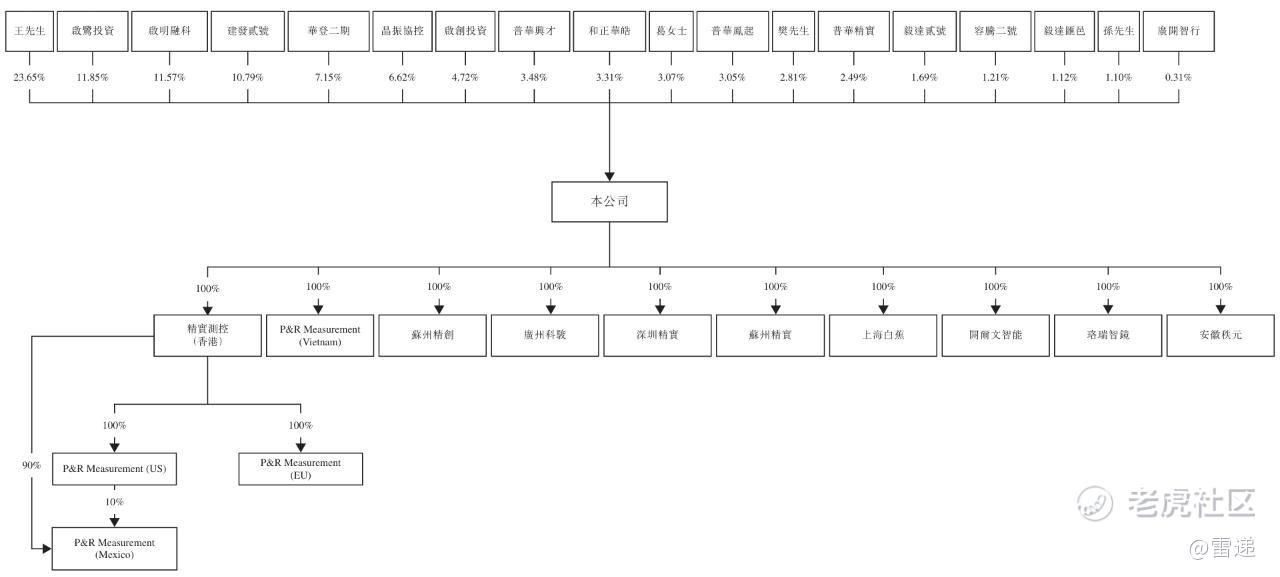 IPO前,精实测控创办人、董事长、执行董事兼总经理王磊直接持有已发行股份总数23.65%,及基于彼作为晶振协控(雇员持股平台)唯一普通合伙人身份,彼被视为对晶振协控所持已发行股份总数6.62%中拥有权益。
