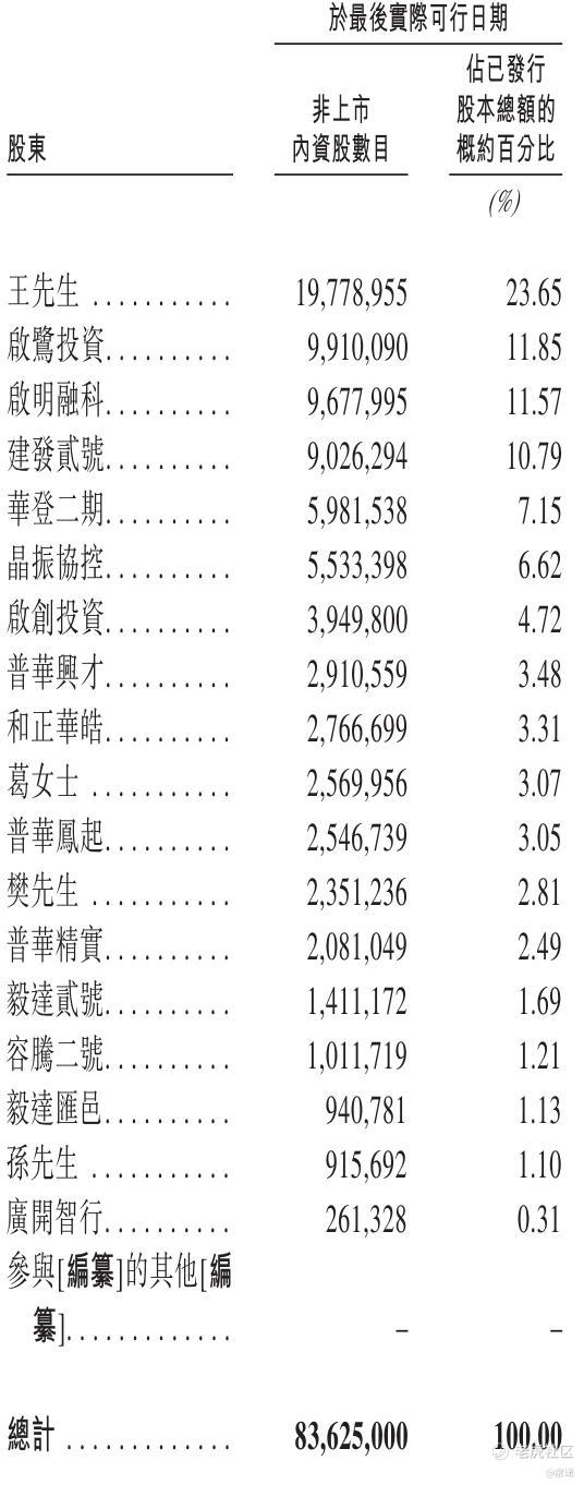IPO前,启鹭投资持股为11.85%,启明融科持股为11.57%,建发贰号持股为10.79%,华登二期持股为7.15%,晶振协控持股为6.62%,启创投资持股为4.72%,普华兴才持股为3.48%,和正华皓持股为3.31%;