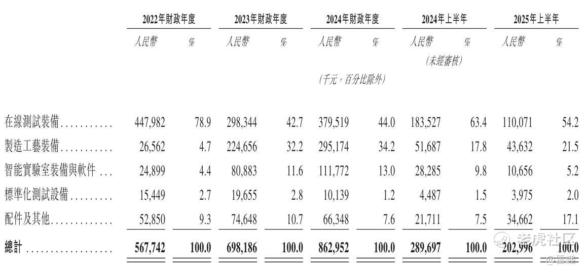精实测控2025年上半年来自在线测试装备收入为1.1亿,较上年同期的1.84亿元下降40%;来自制造工艺装备收入为4363万元,来自智能实验室装备与软件收入为1066万元,来自标准化测试设备收入为398万元,来自配件及其他收入3466万元。