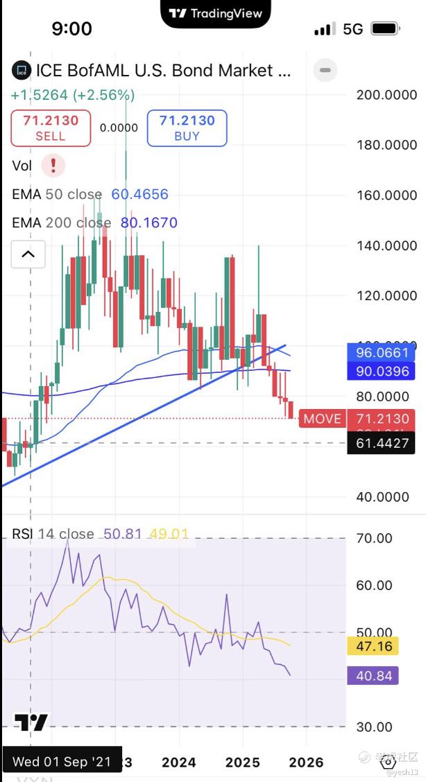 MOVE指数下跌显示债券市场的波动性正在趋于平静,这已经让交易员有信心进行套利交易和曲线陡化。这就是为什么2年期/10年期利差转为正值的原因:市场开始消化联准会进一步降息的预期。但长期债券殖利率仍是限制因素,10年期殖利率略高于4%,30年期殖利率接近4.7%,这反映了美国公债发行量大、赤字创纪录以及外国需求减弱。在正常情况下,这些因素会使长期债券殖利率维持坚挺。但如果发生重大冲击,无论是1.5万亿美元的商业房地产展期与创纪录的办公室空置率相撞、消费者信贷拖欠率飙升,还是政府需要在2026年之前为12万亿美元的债务进行再融资,避险需求都可能超过供应。再加上联准会的资产负债表支持,长期债券价格可能会突然剧烈调整,与我们在2022年之前看到的崩盘如出一辙。