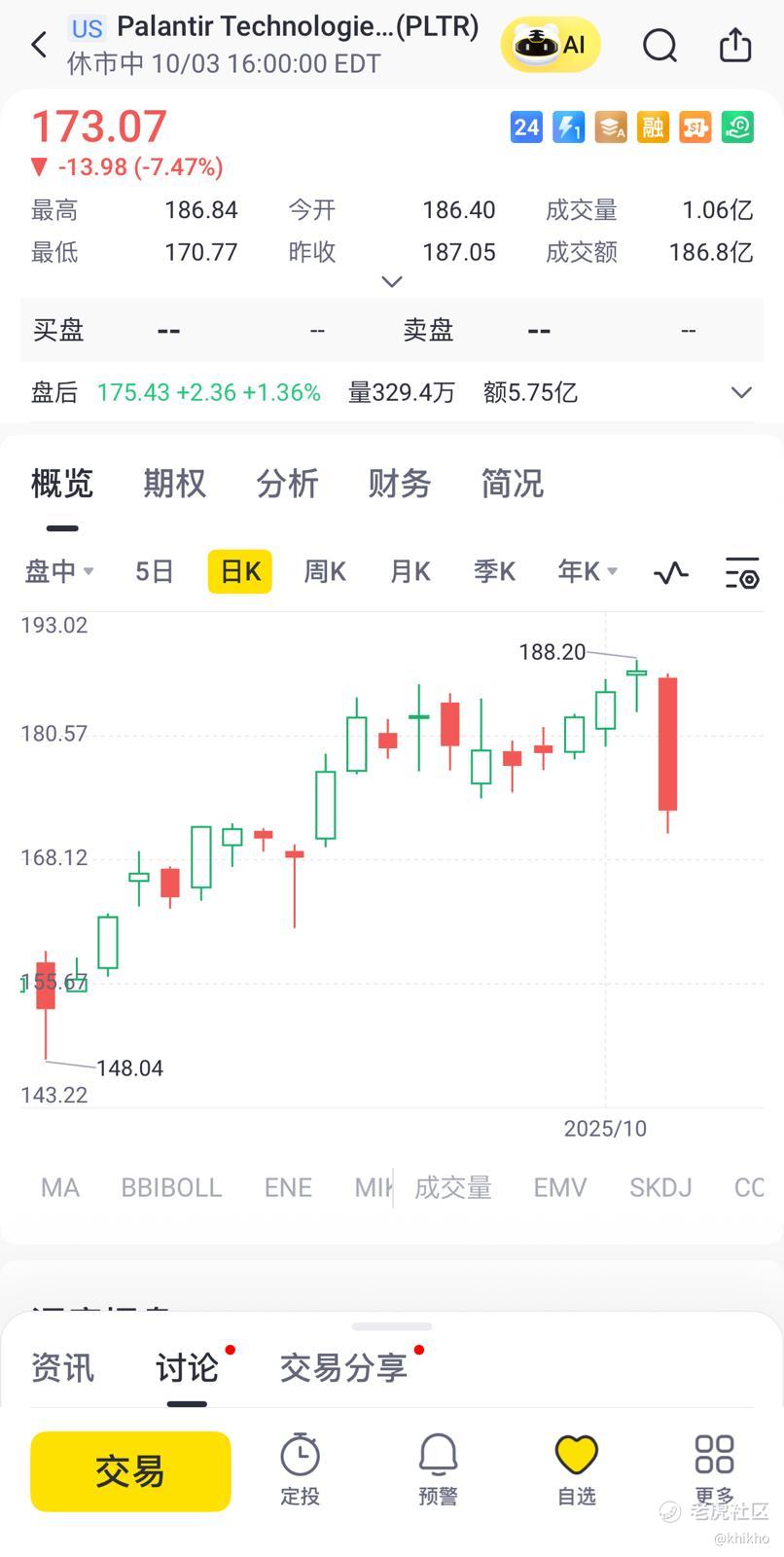 这个消息一出来,市场反应相当猛烈,PLTR 股价在上个周五直接就暴跌约 7.5%,这是从今年8月以来最大单日跌幅,成为当天 $标普500ETF(SPY)$ 里表现最差的一只成分股。