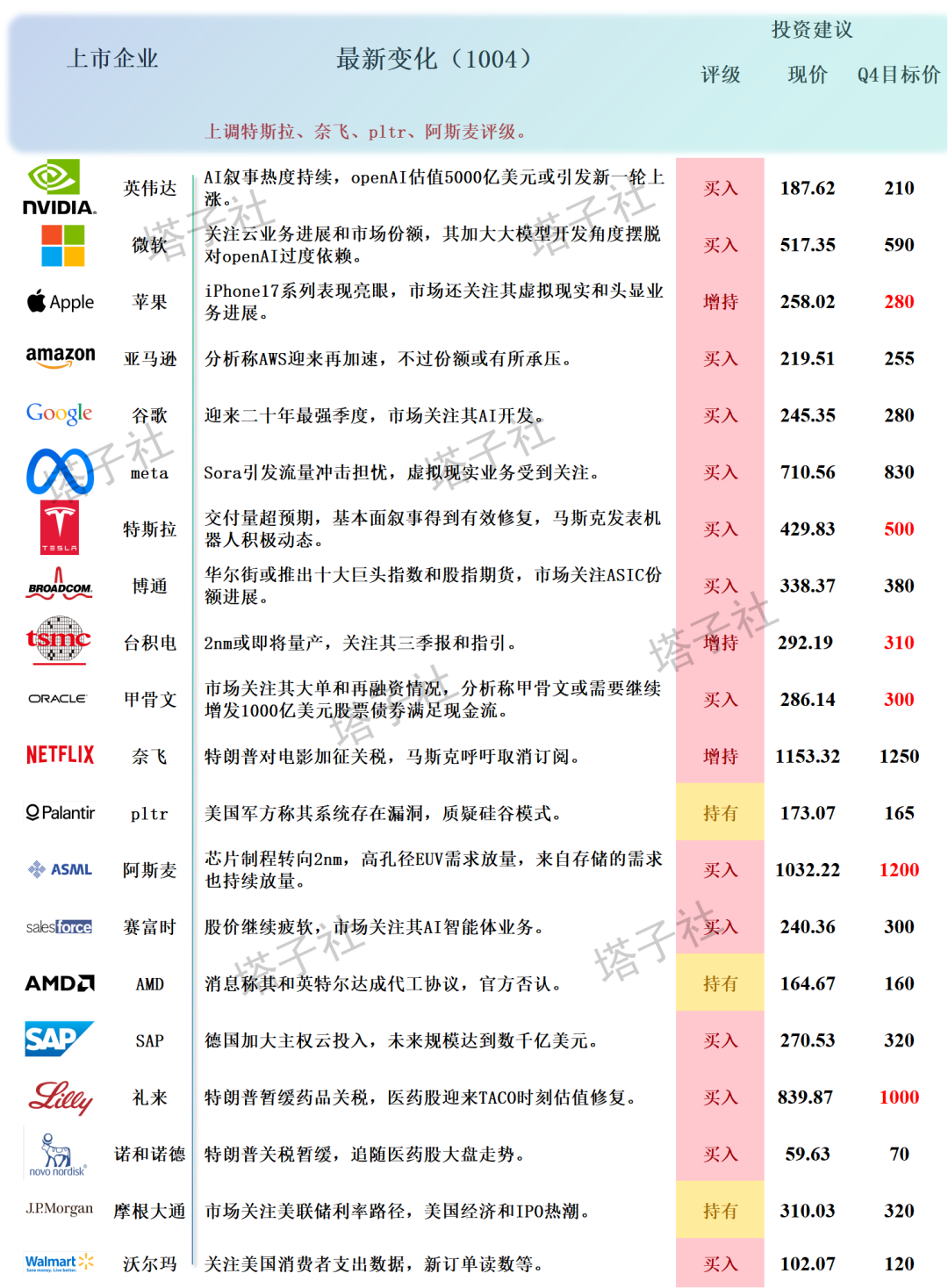 说明:买入(10%以上上涨空间)>增持(5%~10%上涨空间)>持有(±5%振幅空间)>减持(5%~10%下跌空间)>卖出(10%以上下跌空间);此外,如果某股票的波动率较低,持股体验好,则酌情上调评级,波动率高则反之。