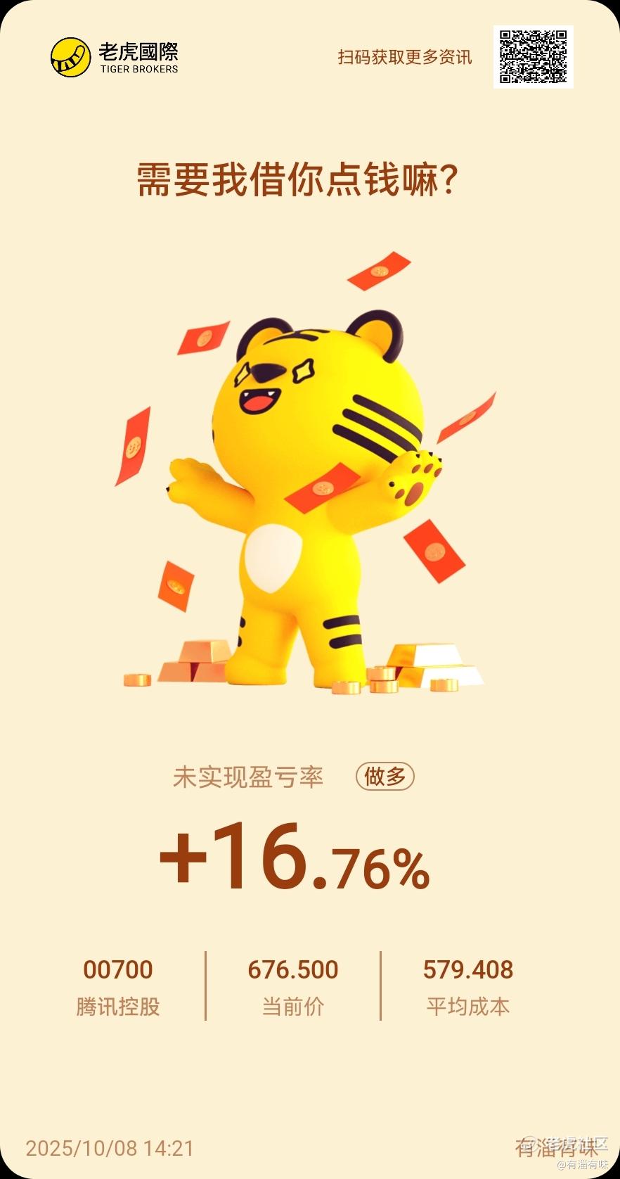 $腾讯控股(00700)$ 腾讯控股我是坚定看好你,买你我|能盈利,当初买了小米。就这么上上下下。后来买了阿里巴巴,,港股就买了3只,结果小米阿里都亏钱。腾讯在600元附近。卖了阿里及小米。全部在腾讯。共1600股。现在人很轻,松,有空就去做做模拟。