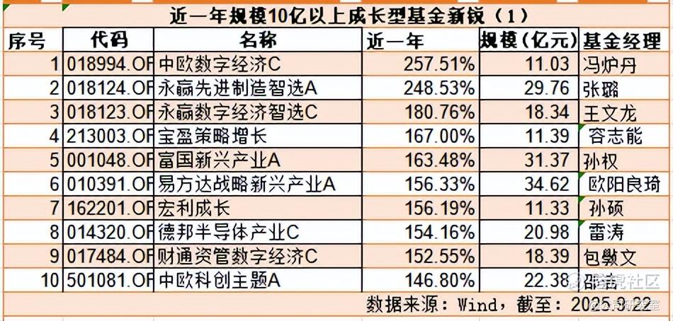 Wind数据显示,2024.923-2025.9.22期间,国内全市场22818只开放式基金,资产规模10亿以上,业绩超过100% 的116只权益基金中,有40只由任职5年及以下的基金新锐掌管,占比34.48%。