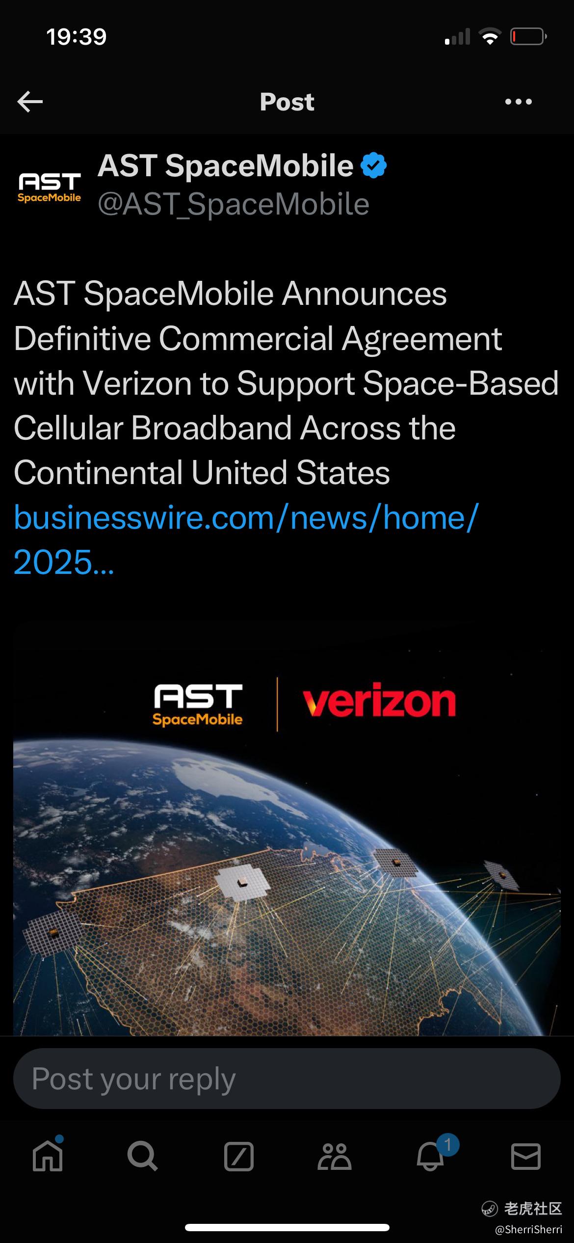AST SpaceMobile宣布与威瑞森(Verizon)达成最终商业协议,支持美国本土的太空基蜂窝宽带服务$AST SpaceMobile, Inc.(ASTS)$